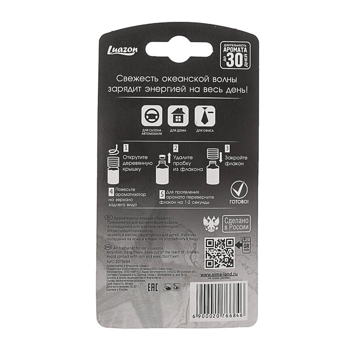 Подвесной ароматизатор Luazon — отличное дополнение в салон автомобиля. Оригинальный дизайн удивит попутчиков, а приятный запах будет долго радовать владельца.