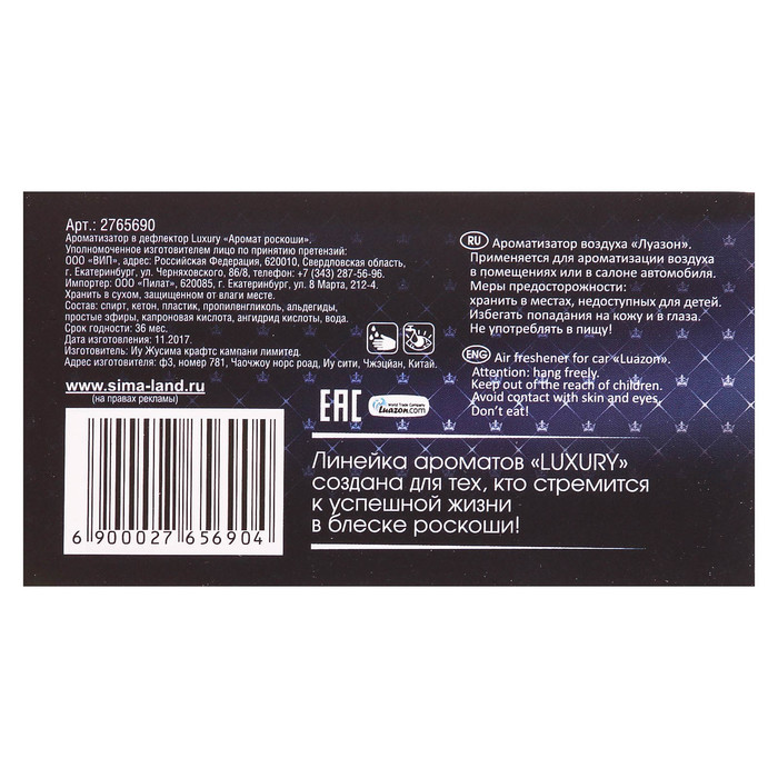 Ароматизатор в дефлектор Luxury "Роскошь", парфюм