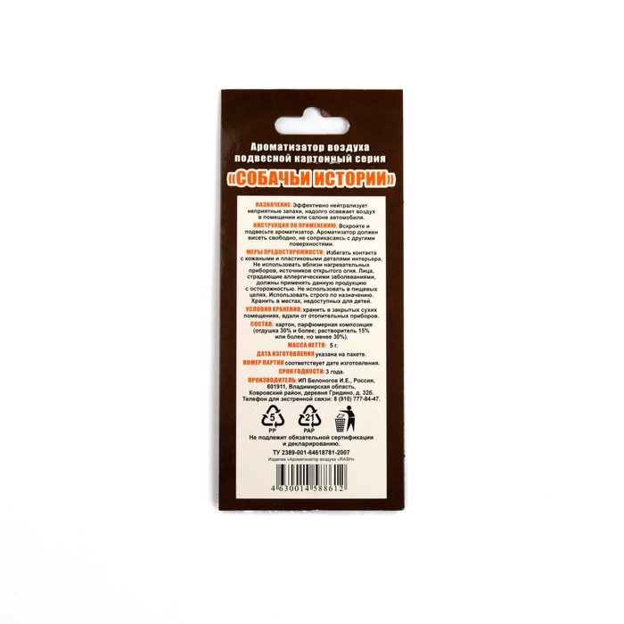 Ароматизатор воздуха подвесной, картонный "Собачьи истории" Чёрный лёд