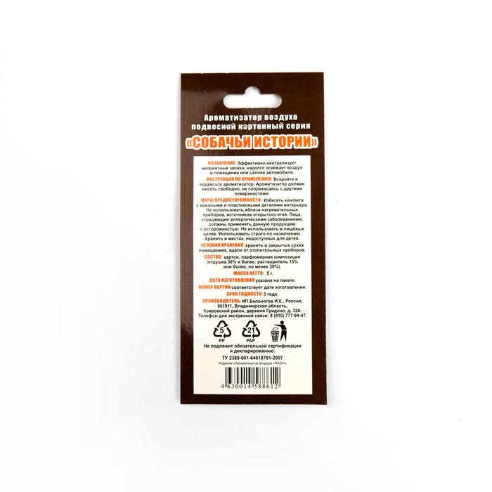 Ароматизатор воздуха подвесной, картонный "Собачьи истории" Ваниль