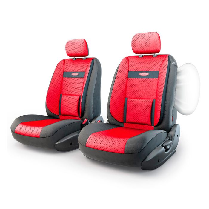 Авточехлы универcальные AUTOPROFI Трансформеры COMFORT, TRS/COM-001G BK/RD, экокожа, набор из 6 предметов, передний ряд, цвет чёрный/красный