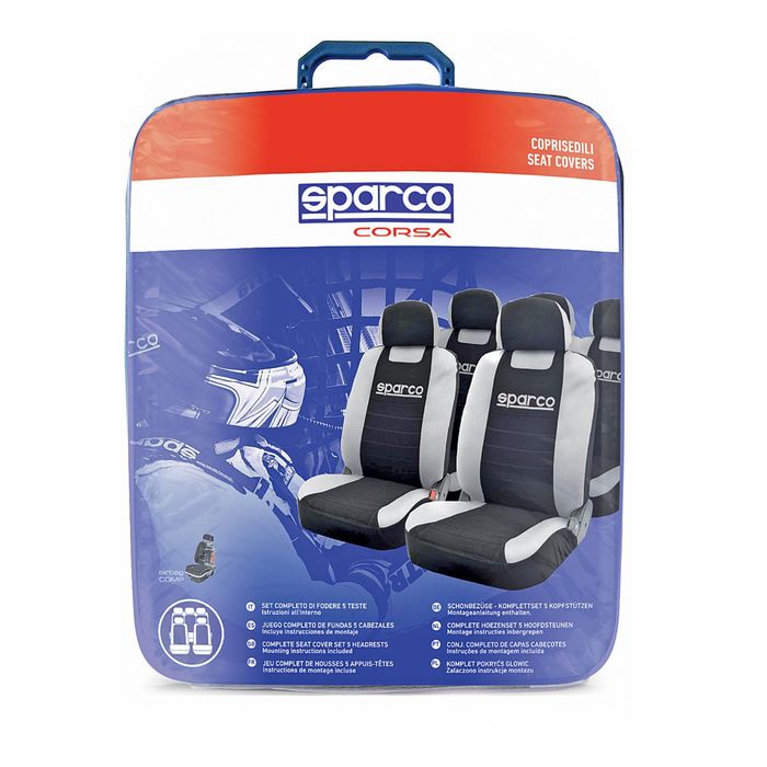 Авточехлы универcальные SPARCO, серия "Classic", SPC/CLS-1105 BK/GY, полиэстер, набор из 11 предметов, цвет чёрный/серый