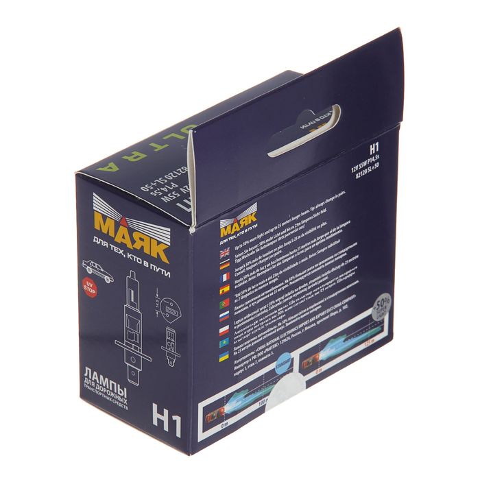 Автолампа "МАЯК УЛЬТРА", Super Light +50%, H1, 12 В, 55 Вт (P14,5s), 82120SL+50new