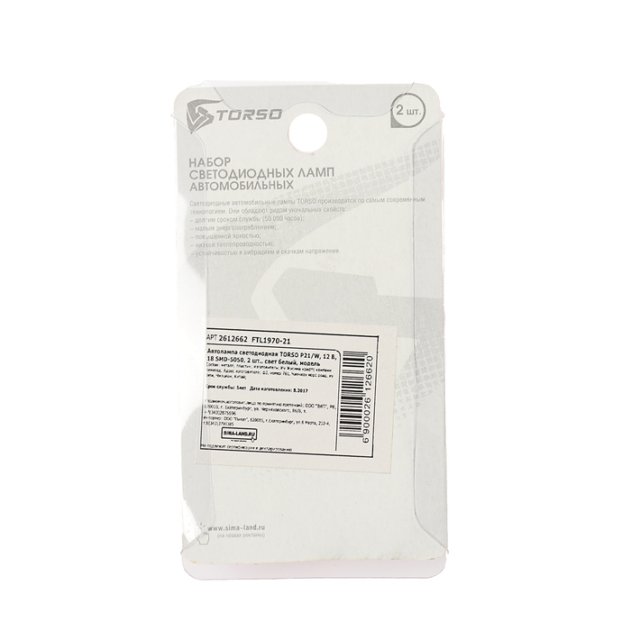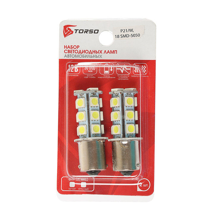 Автолампа светодиодная TORSO P21/W, 12 В, 18 SMD-5050, 2 шт., свет белый
