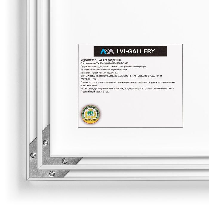 Фоторепродукция задаст настроение интерьера. Она продумана до мелочей. Акриловое стекло с высокой прозрачностью придаёт картине роскошный глянец. А специальный багет делает вид фото облегчённым и современным. С лицевой стороны по периметру видна лишь узкая полоска рамки шириной 2 мм, не перекрывающая изображение. Толщина изделия при этом составляет всего 22 мм.