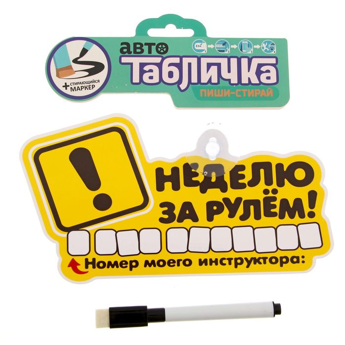 Автотабличка с маркером "Неделю за рулём",19,9 х10,8 см