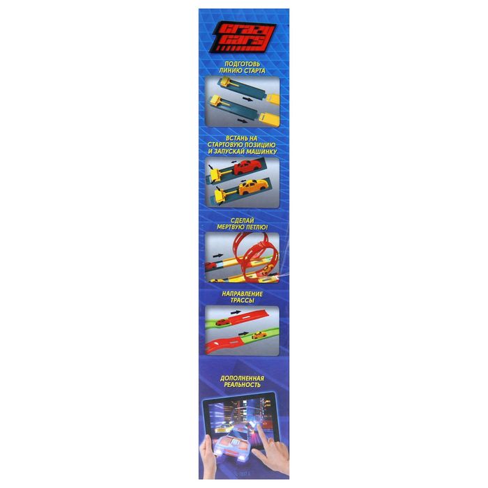 Внутри коробки вы найдёте картинку — игровое поле. Наведите камеру и начните гонку. Управляйте машинкой, объезжайте препятствия и придите к финишу за максимально короткое время.