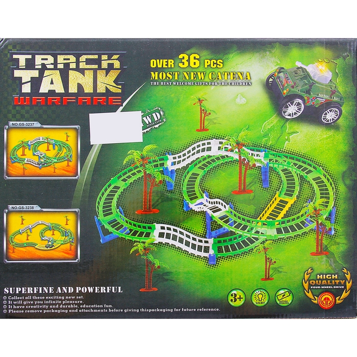 Автотрек "Танк", работает от батареек, световые эффекты, 36 деталей