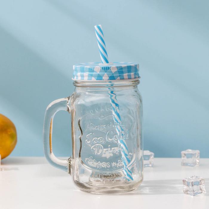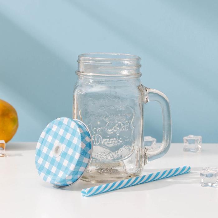 Банка 500 мл "Диско", с ручкой, крышкой и трубочкой, LED подсветка, цвета МИКС