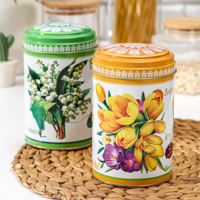 Банка для сыпучих продуктов 1,1 л "Садовые цветы", круглая, d=9,9 см, h=14,5 см