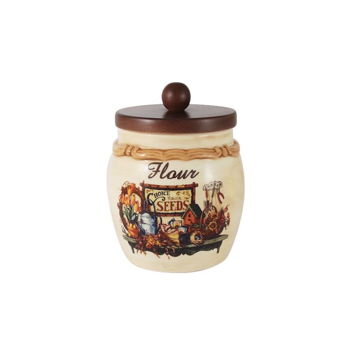 Банка для сыпучих продуктов с деревянной крышкой мука "Садовые цветы", 1,2 л