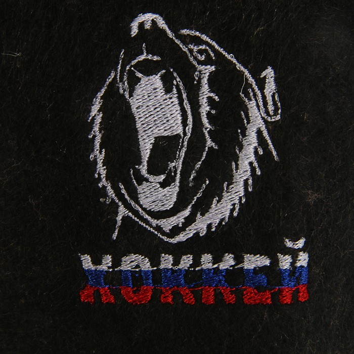 Банная шапка «Шлем хоккеиста с вышивкой», войлок, чёрный