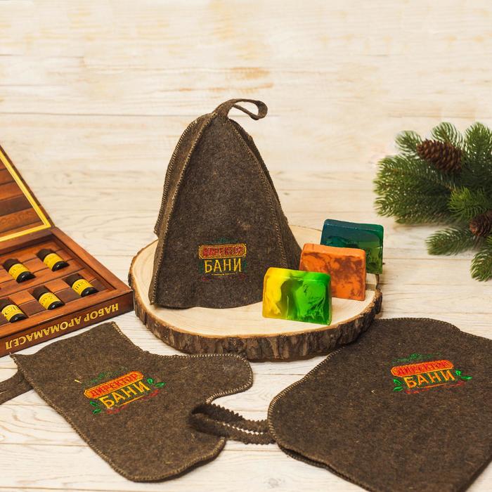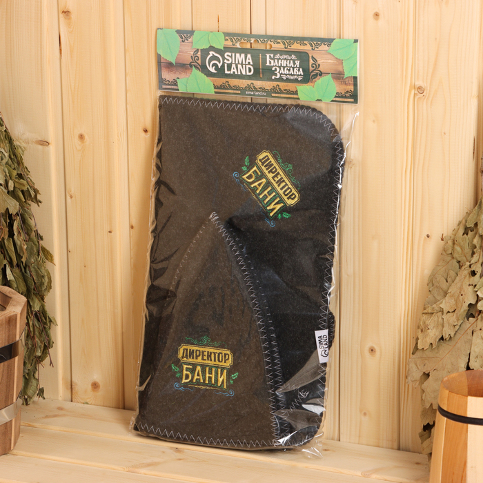 Банный набор "Директору бани! Горячего пара": шапка, коврик, рукавица