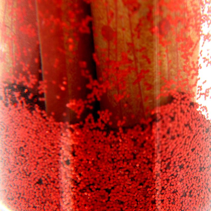 2. Насыпьте в баночку блёстки и плотно закройте её, сверху запечатав наклейкой.