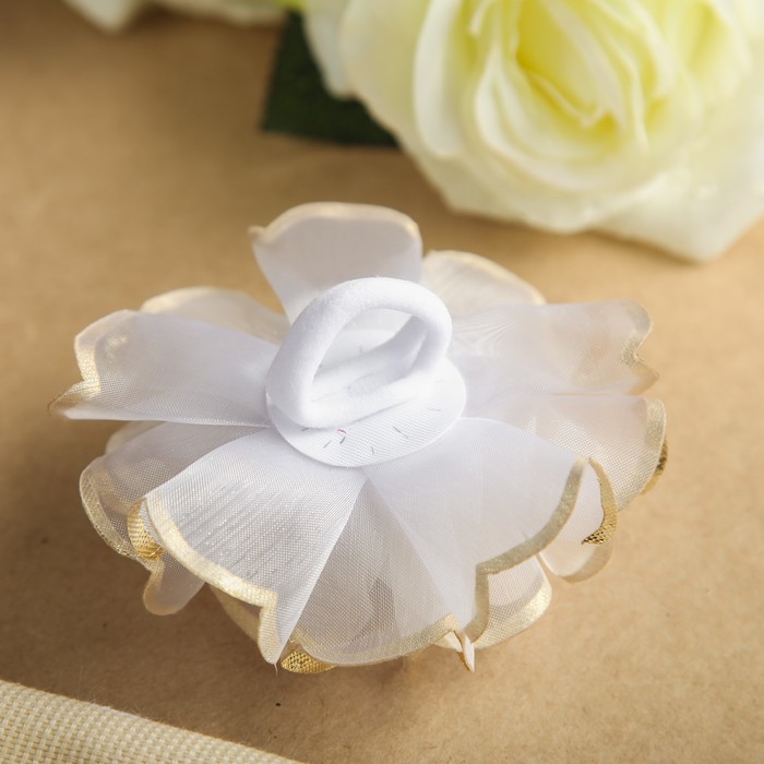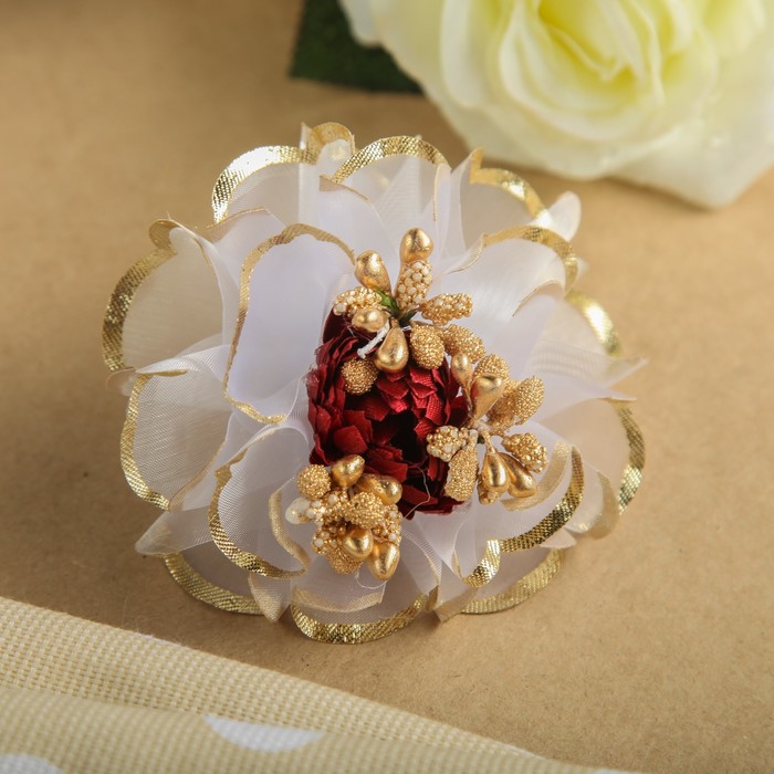 Бант для девочек с резинкой "Яблочный пирог" белый, с золотой каймой, красным цветком, 10 см — отличный помощник в создании аккуратной и красивой укладки за считанные секунды. Сделайте образ ярким!
