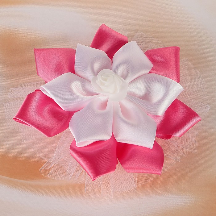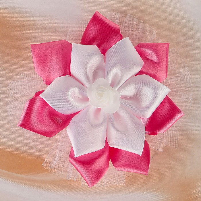 Бант свадебный для декора «Канзаши» D 14 см Угловой с фатином 1 шт, цвет ярко-розовый