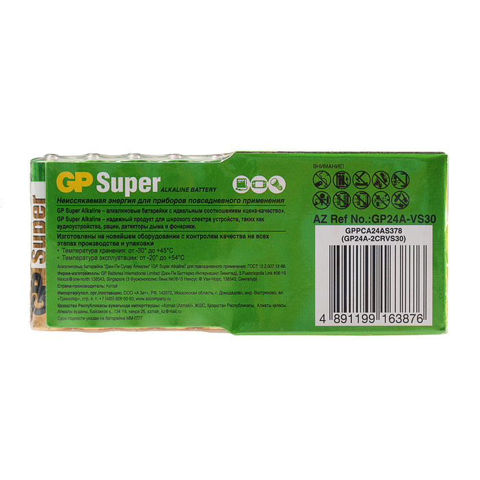 Батарейка алкалиновая GP Super, LR03-30S, ААА, спайка, 30 шт