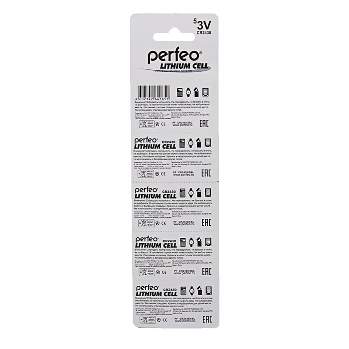 Батарейка литиевая Perfeo, CR2430-5BL, блистер, 5 шт.