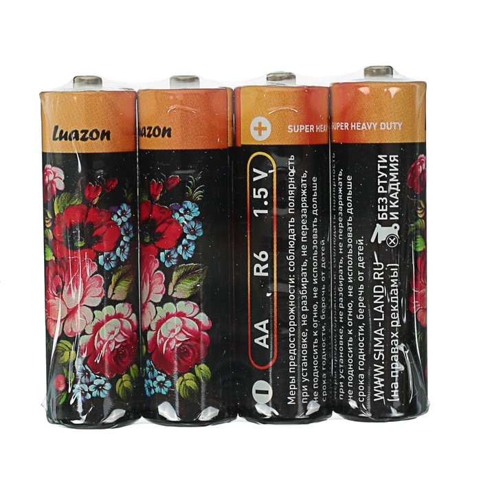 Батарейка Солевая Luazon "Жостовская роспись" АА R6, набор 4 шт в плёнке