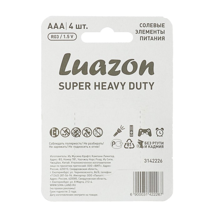 Батарейка Солевая Luazon "Жостовская роспись" ААА R03, набор 4 шт в блистере