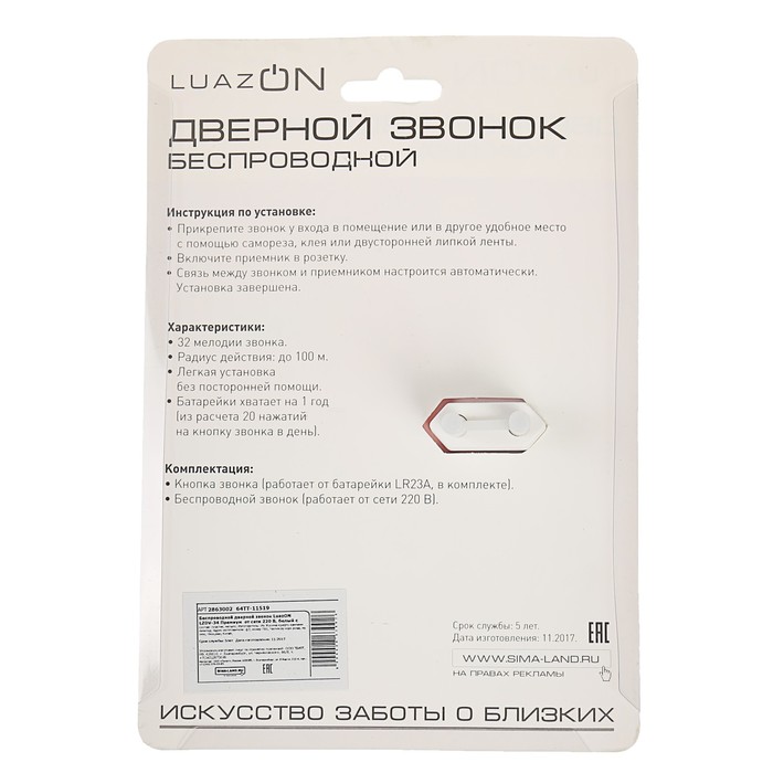 Мы предлагаем широкий ассортимент бытовой электроники. Беспроводной дверной звонок LuazON LZDV-34 Премиум от сети 220 В, белый с черной вставкой — это полезный и актуальный прибор, который прослужит долго и сделает вашу жизнь проще.