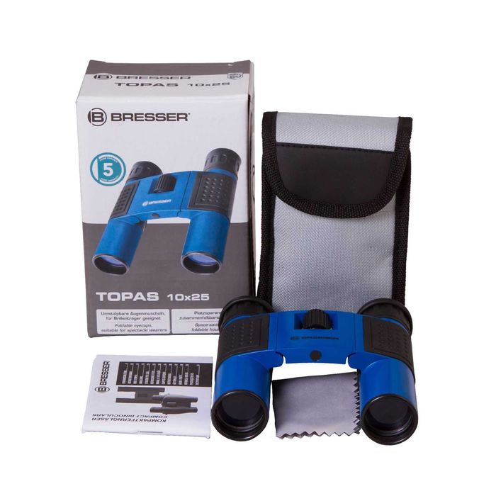 Собираетесь в турпоход или на горную прогулку, в экспедицию или на военно-полевые сборы? Бинокль Bresser Topas 10x25 Blue станет важным помощником и будет полезен в любых условиях и ситуациях. А охота, рыбалка и другие развлечения с использованием прибора принесут намного больше эмоций и добычи.