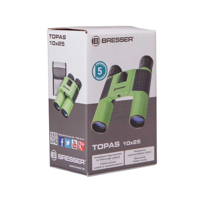 Собираетесь в турпоход или на горную прогулку, в экспедицию или на военно-полевые сборы? Бинокль Bresser Topas 10x25 Green станет важным помощником и будет полезен в любых условиях и ситуациях. А охота, рыбалка и другие развлечения с использованием прибора принесут намного больше эмоций и добычи.