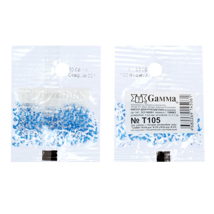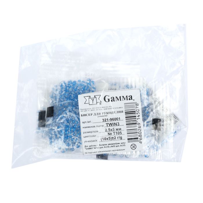 Бисер "GAMMA" 2,5х5мм (Т105 прозрачный/синий) привезён из Чехии, создан из стекла высокого качества, отличается удивительно гладкой и ровной текстурой, благодаря этому узор выглядит аккуратно и эффектно.