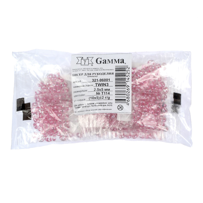 Бисер "GAMMA" 2,5х5мм (Т114 прозрачный/розовый) привезён из Чехии, создан из стекла высокого качества, отличается удивительно гладкой и ровной текстурой, благодаря этому узор выглядит аккуратно и эффектно.