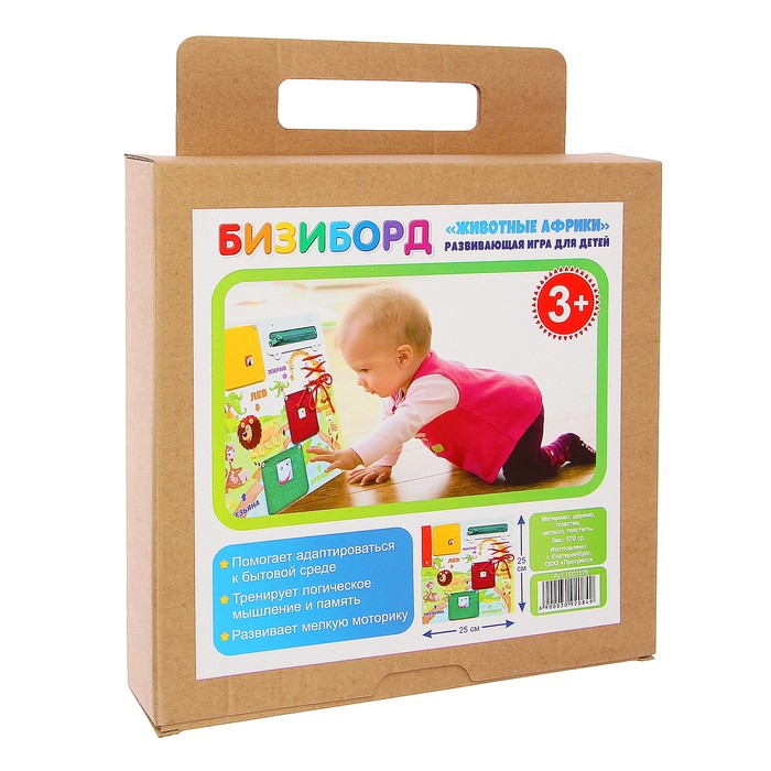 Методы воспитания и образования будут меняться бесконечно, но во все времена постоянным остаётся одно ― радость ребёнка от подаренной ему игрушки. Как известно, счастливая улыбка крохи ― самая большая награда для родителей. Бизиборд "Животные Африки", 25 х 25 см — отличный подарок вашему малышу.