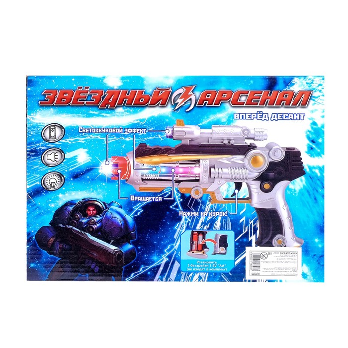 Бластер "Звёздный арсенал", световые эффекты, русская озвучка, работает от батареек