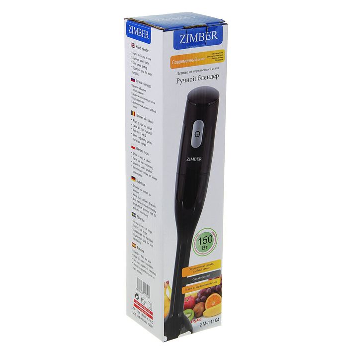 Блендер Zimber поможет взбить крем для торта, приготовить коктейль, соус, тесто, детское питание, десерты и супы-пюре. Кроме того, с помощью прибора вы легко измельчите овощи, фрукты, ягоды, зелень и другие подобные продукты. Обтекаемая форма корпуса обеспечивают максимальный комфорт при эксплуатации. Устройство можно использовать в любой посуде с высокими краями.