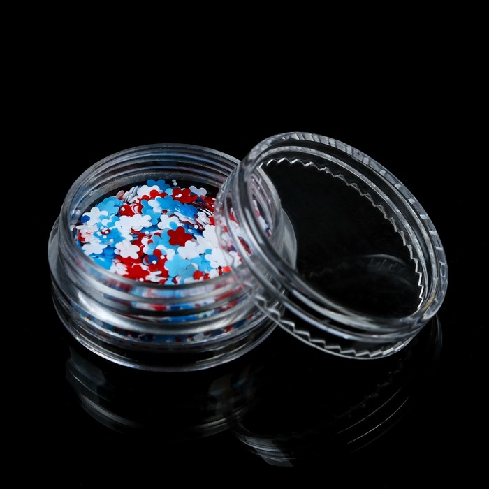 Блёстки/пайетки для ногтей "Цветочки", цвет голубой/красный/белый