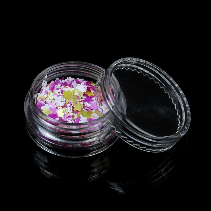 Блёстки/пайетки для ногтей "Цветочки", цвет жёлтый/малиновый/фиолетовый/белый