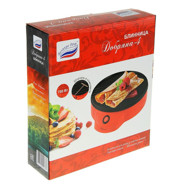 Блинница "Великие реки" Добряна-4, 700 Вт, диаметр 21 см, тефлоновое покрытие