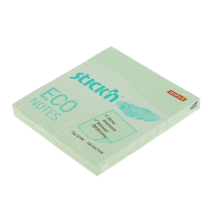Блок с липким краем 76x76мм, 100 листов Hopax ECO, пастель зеленая