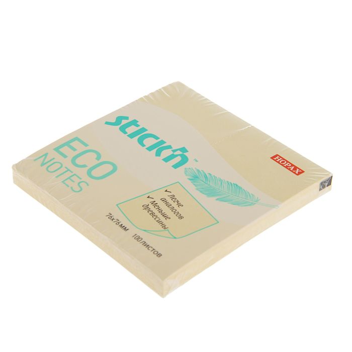 Блок с липким краем 76x76мм, 100 листов Hopax ECO, пастель желтая