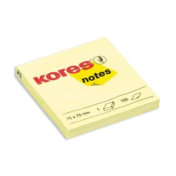Блок с липким краем Kores, 75х75 100 листов, жёлтая
