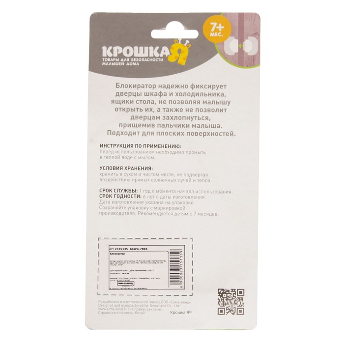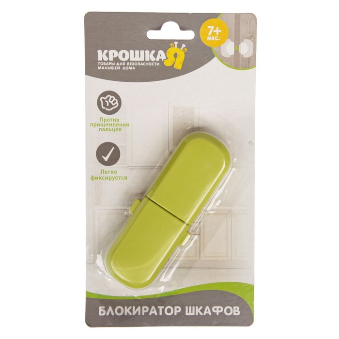Блокиратор надёжно запирает створки шкафов, чтобы малыш не добрался до опасных для него предметов.