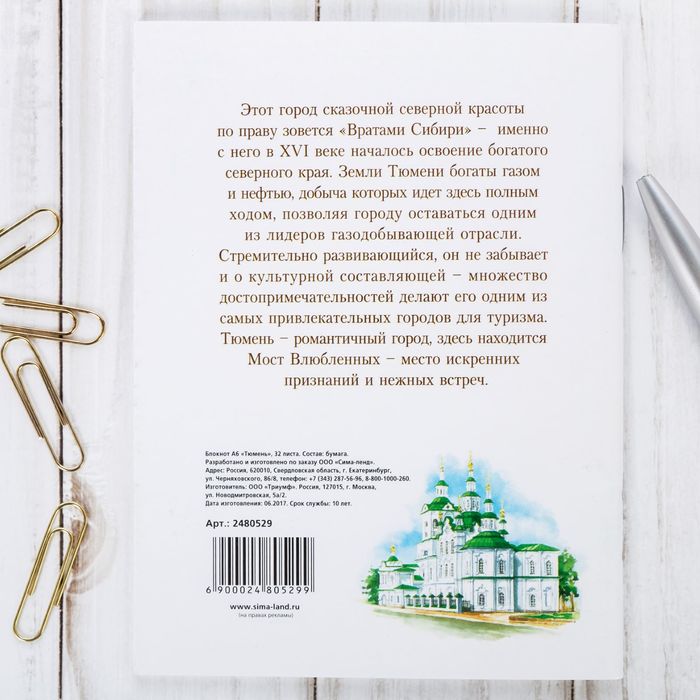 Блокнот А6 "Тюмень", 32 листа — сувенир в полном смысле этого слова. И главная его задача — хранить воспоминание о месте, где вы побывали, или о том человеке, который подарил данный предмет. Преподнесите эту вещь своему другу, и она станет достойным украшением его дома.