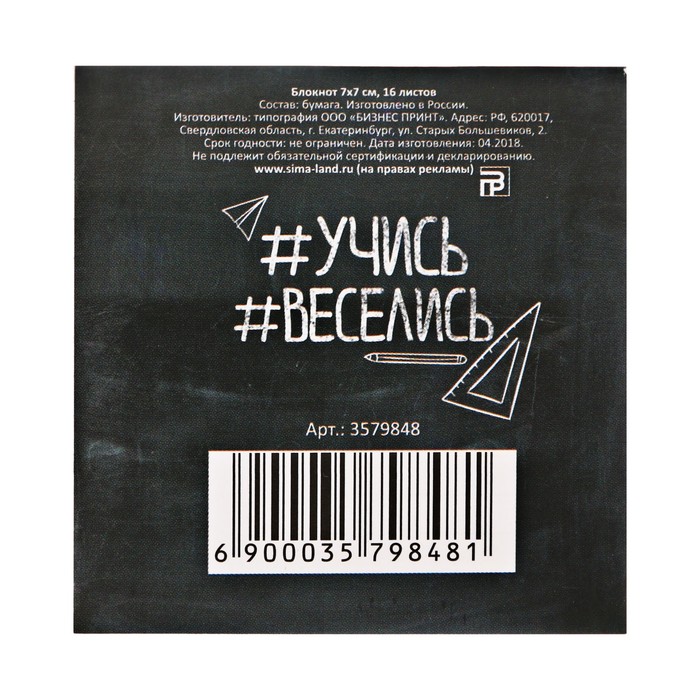 Блокнот "Для заметок", 7 х 7 см, 16 листов обладает всеми необходимыми характеристиками, чтобы стать вашим полноценным помощником на каждый день.