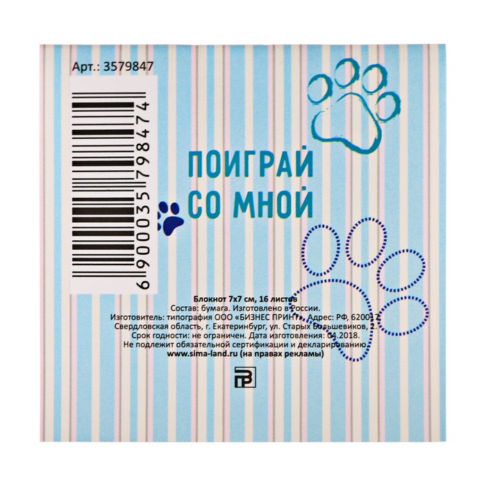 Блокнот "Гав", 7 х 7 см, 16 листов обладает всеми необходимыми характеристиками, чтобы стать вашим полноценным помощником на каждый день.