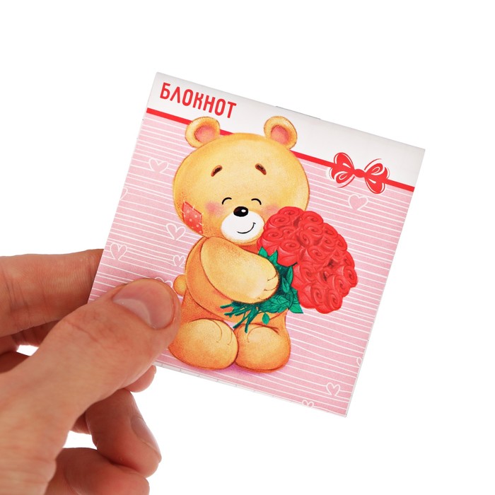 Блокнот "Мишка с букетом", 7 х 7 см, 16 листов