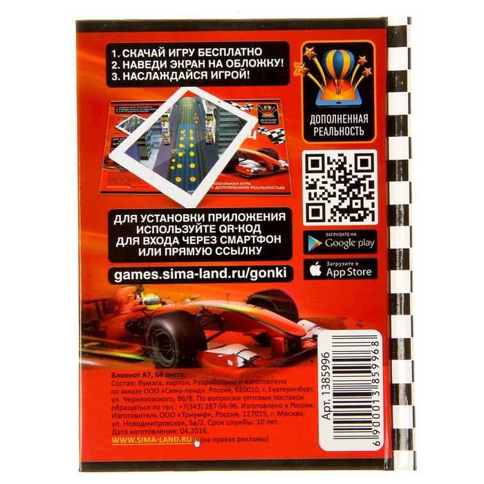 Блокнот + игра "Гонки без границ", твёрдая обложка, А7, 64 листа