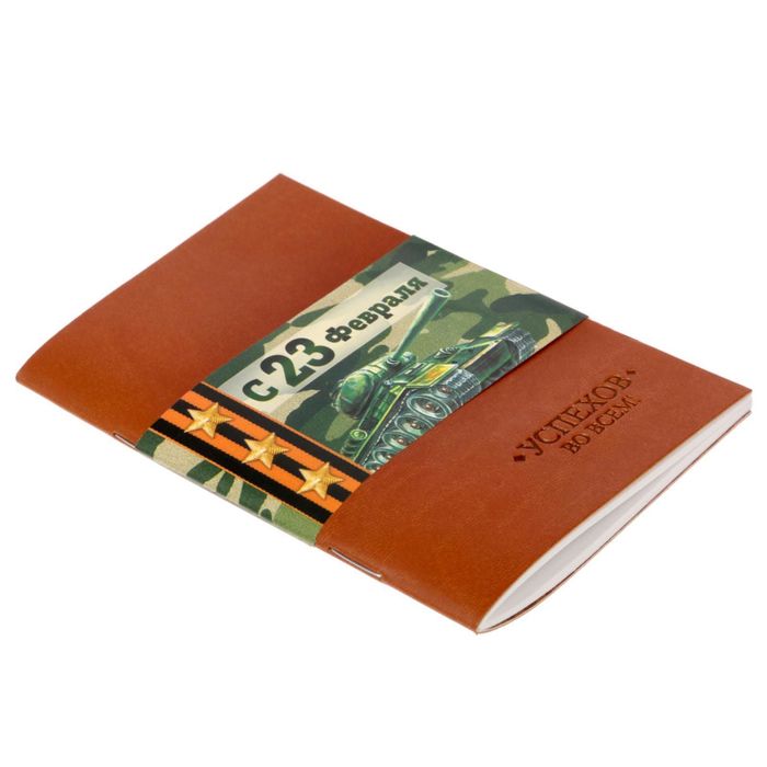 Блокнот "С 23 февраля", 32 листа, А6, экокожа