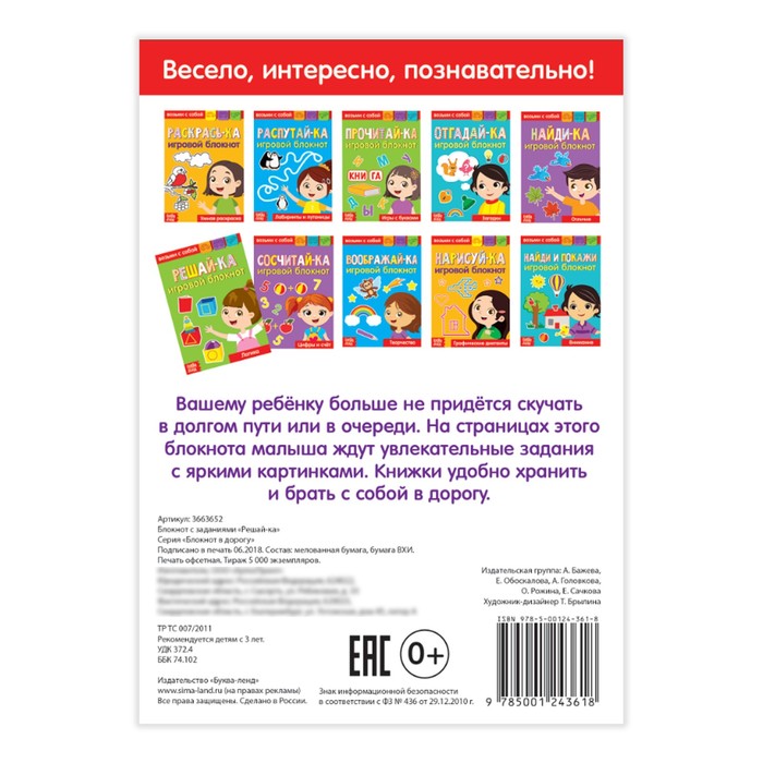 Блокнот с заданиями "Решай-ка" 20 стр — отличный вариант для тех родителей, которые привыкли окружать своего малыша только лучшими и качественными вещами. За такой книжкой ваш ребёнок проведёт время с пользой и удовольствием, узнает много нового и интересного.
