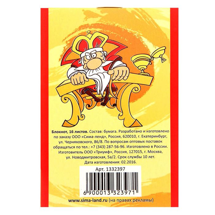 Блокнот в клетку "Царские указы", на скрепке, А7, 16 листов