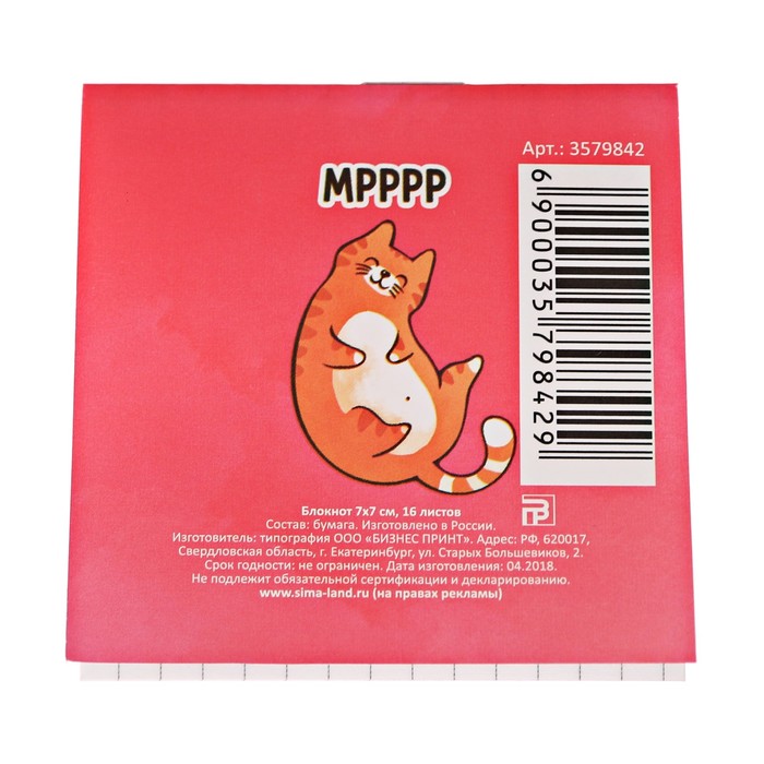 Блокнот "Замурчательный блокнот", 7 х 7 см, 16 листов обладает всеми необходимыми характеристиками, чтобы стать вашим полноценным помощником на каждый день.