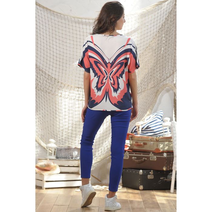 Блуза 4988, размер 44, рост 164 см, цвет т.синий/коралловый/белый