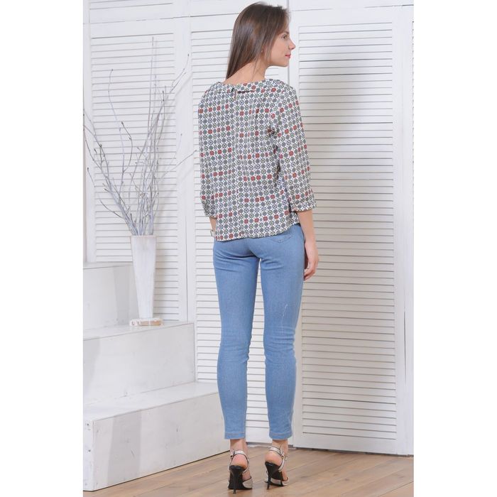 Блуза 5175, размер 46, рост 164 см, цвет белый/серый/зеленый